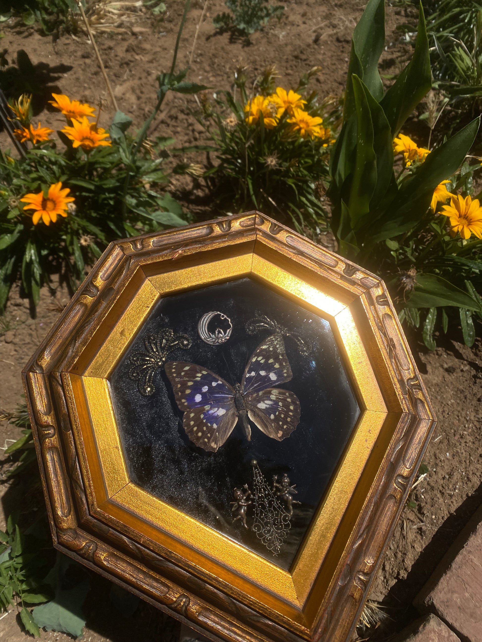 A beautiful Sasakia Charonda fitted within a vintage frame with bronze decals.